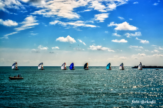 Небо, море, парусные лодки.