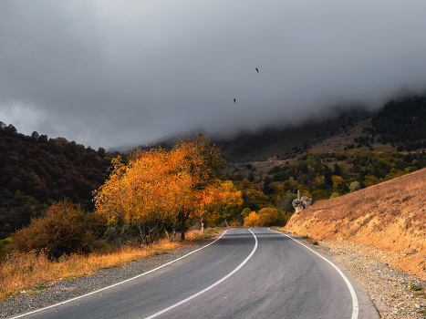 Осеннее шоссе через перевал.