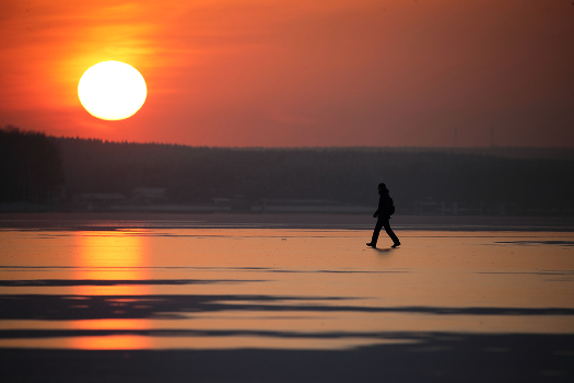 первый лед на озере, и первый ледовый пешеход