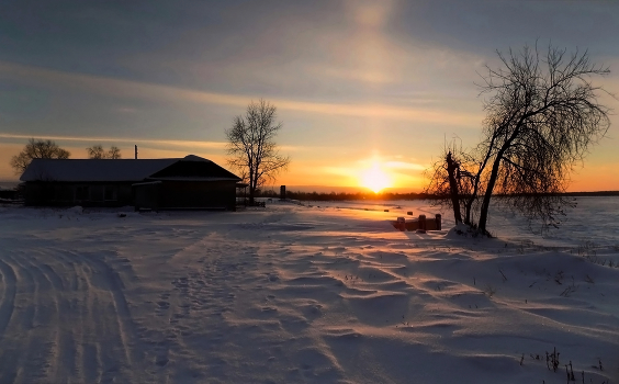 Зимний деревенский закат