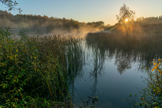 восход лесном пруду