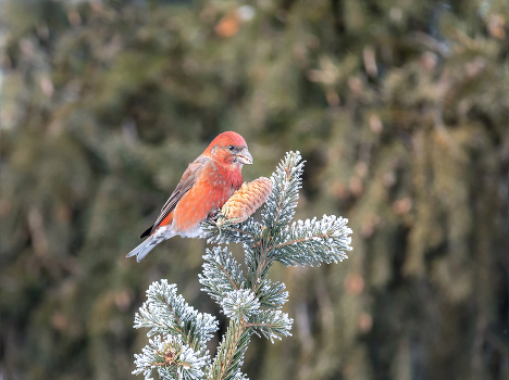 самец.. оторвал шишку с ели и пересел на соседнюю сосну..