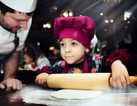 Наш шеф-повар - властитель вдохновенья, теперь тестом можно повелевать и раскатывать.*