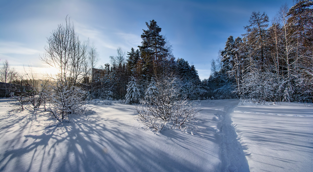 Зимний день пронизан солнцем