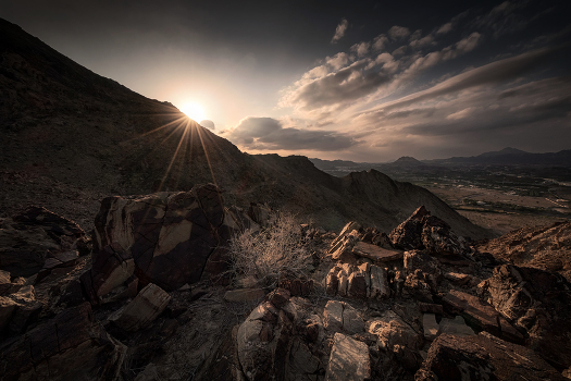 Закат в пустынных скалах Хатта