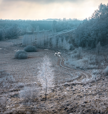 Поэтичный вид с серебристой берёзой. Яковлевский район. Январь, 2023 года. Из фотопроекта «Земля Белгородская».