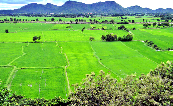 Рисовые поля зазеленели после дождей