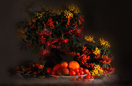Щедрая осень!!! Город весь в красивейших рябинах!!! В лесу полыхала калина, много было шиповника... У нас в огороде было много томатов - весь подоконник в зале был красный от помидоров...