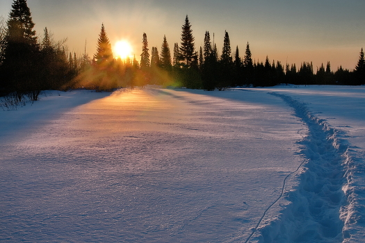 На закате.