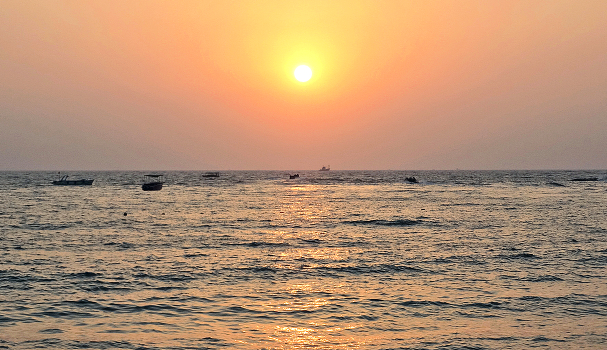 Вечер на море рыбацких катеров