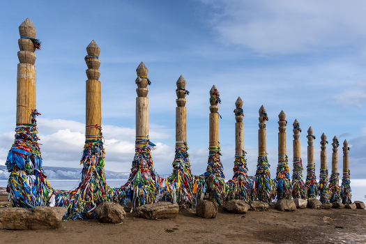 Байкал. Остров Ольхон. Шаманские столбы на мысе Бурхан.
