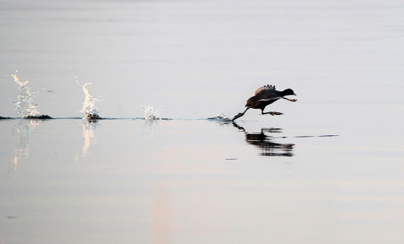 лысуха спасается бегством от соседей