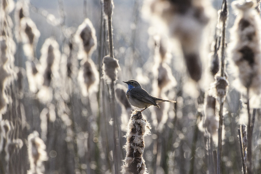Варакушка в рогозе. Контражур