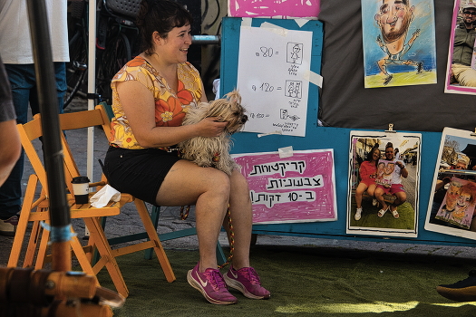 Она позирует уличному художнику-карикатуристу :)