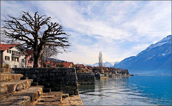 Уютная деревенька смотрит на юг.Под ногами озеро, утки,рыбки, впереди горы,свежо.