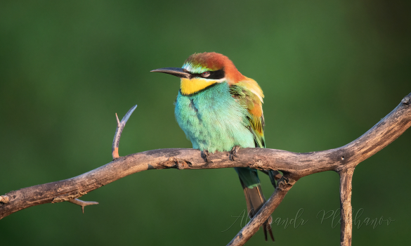 Утро в колонии золотистых щурок . Рассвет , встаёт солнце , щурки проснулись и радуются новому дню .
