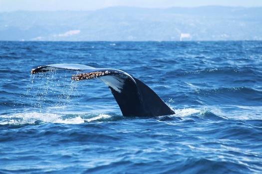 Горбатый кит с расстояния в десяток метров