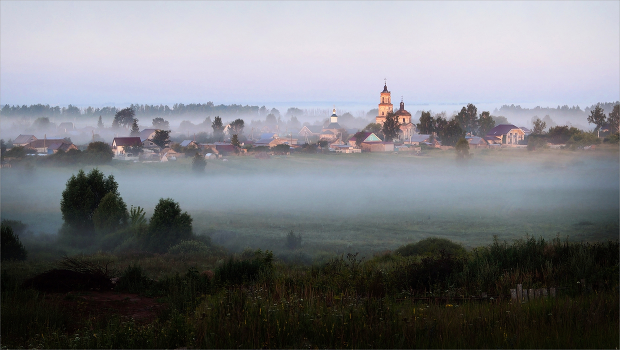Летний низовой пойменный (поземный) туман. Окрестности села Заречного.