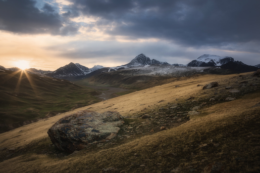 Закат на высокогорном пастбище (джайлоо) Сарала-Саз.