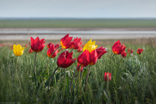 В степях Калмыкии произрастает несколько видов тюльпанов. Эффектнее всего выглядит тюльпан Шренка, благодаря которому на некоторых участках степь становится буквально красной