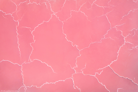 Соль на поверхности высохшего розового озера образует интересные паттерны