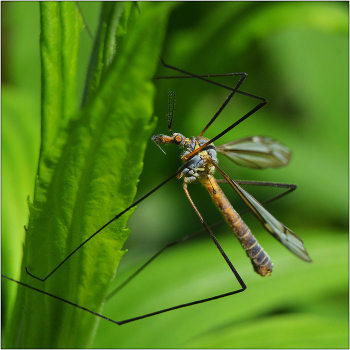 Долгоножка огородная - Tipula oleracea. Насекомое из детских "ужастиков" . Укусить не может!