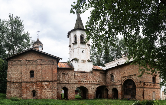 XIV век, Великий Новгород, церкви соединены переходом с колокольней. Не действующие.