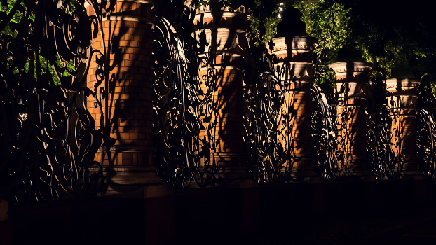 Прогулки по ночному Петербургу. Ограда Михайловского сада со стороны храма Спас на Крови.