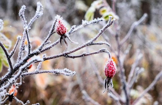 Иней на шиповнике.