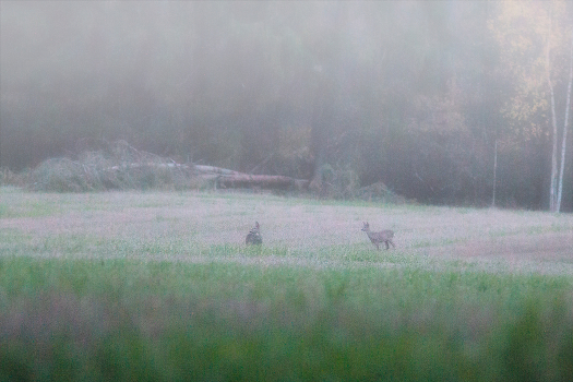 Две косули насторожились, а через минуту убежали.