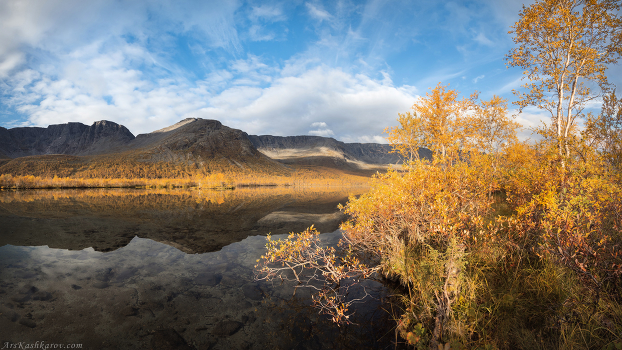 Солнечное осеннее утро на озере Малый Вудъявр. Хибины, середина сентября