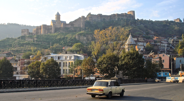 Авлабари (груз. ავლაბარი) — один из древнейших районов Тбилиси. Вид на крепость Нарикала, справа — купол армянской церкви «Эчмиадзин».