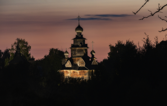 Суздаль, Музей деревянного зодчества. Преображенская церковь из села Козлятьево Кольчугинского района Владимирской области. Построена в 1756 году в три яруса, центр состоит из трех восьмериков, увенчанных луковичной главкой, покрытой лемехом.