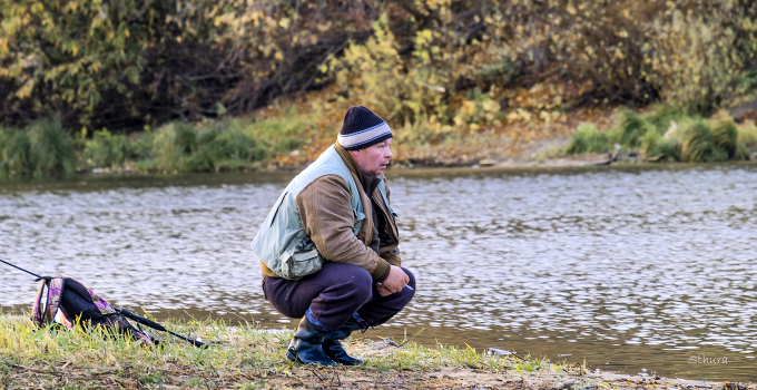 Рыбак на озере.