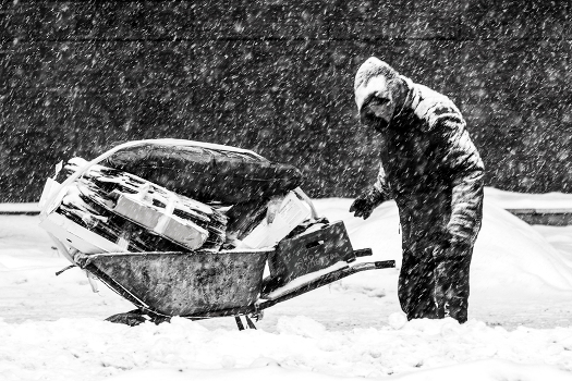 Вчера был очень, очень сильный снегопад ...