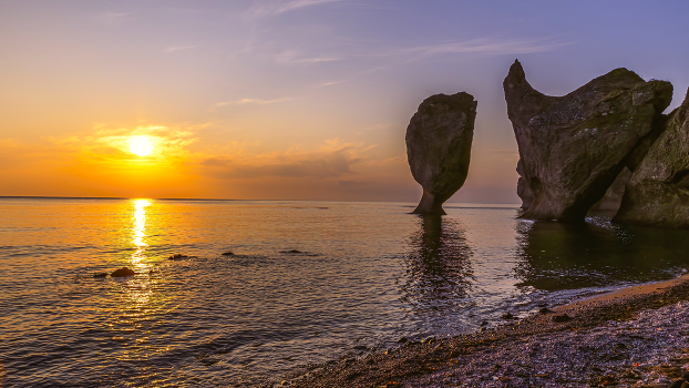 Фото из тура по Приморскому краю. Эти 2 красивые скалы называются Рюмка и петух. Некоторые видят в рюмке чье-то лицо, а вместо очертания петуха в очертании второй скалы видят арфу.