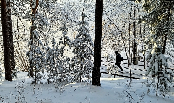Морозно и солнечно, дорога через лес