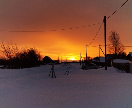 Зима,деревня,закат