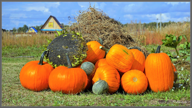 Тыковки меня, конечно, порадовали, но больше всего удивил подсолнух своим диаметром. Не думал, что такой большой вымахает.