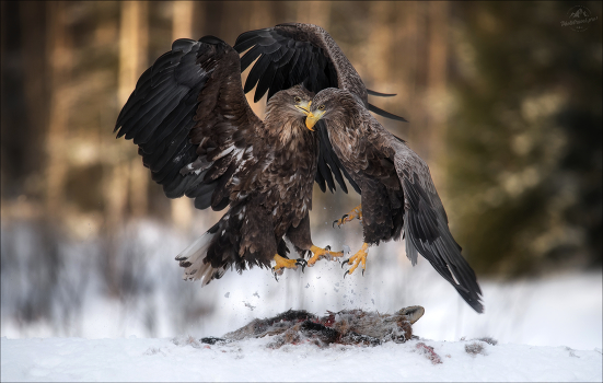 Пара орланов-белохвостов на приваде. Беларусь, природный комплекс «Красный Бор», февраль 2024г. © https://phototravel.pro/phototravel2024/