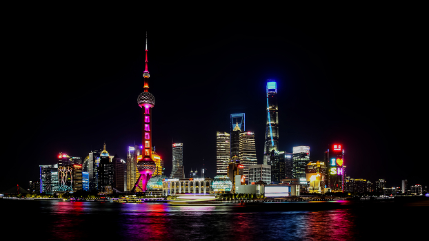 Вид на район Пудун с набережной Вайтань
