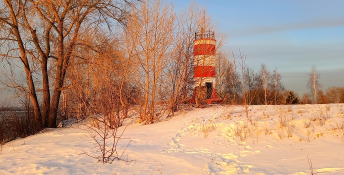 маяк в вечерних закатных красках