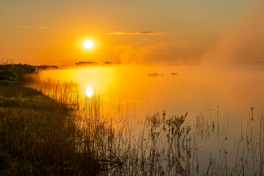 восход на пруду