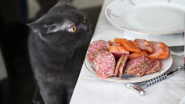 кот и колбаса
