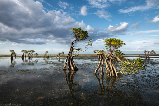 Танцующие деревья для фотографов уже стали «визитной карточкой» острова Сумба. Это небольшая группа низкорослых мангров причудливой формы, одиноко растущих в полосе отлива на удалении от берега. Индонезия, февраль месяц