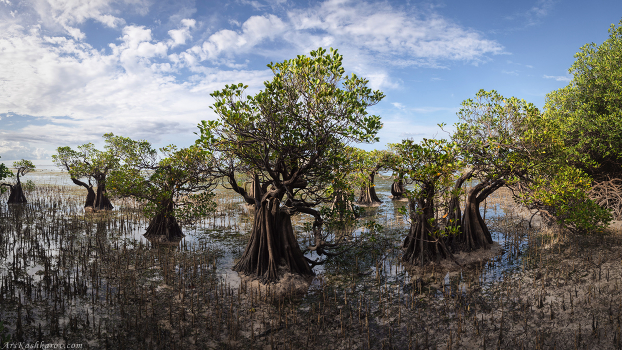 Пейзаж мангровых зарослей в полосе отлива. Остров Сумба, Индонезия
