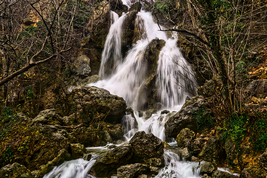 Крым Кизилкобинское ущелье Водопад Су-Учхан весна