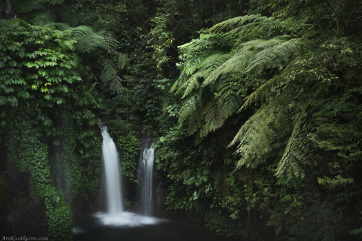 Фотографировать пейзажи в тропическом лесу трудно. Вокруг слишком много зелени, сложно найти и выделить какой-то главный объект. Иногда таким объектом может стать, например, небольшой водопад, затерянный в джунглях. Индонезия, остров Бали