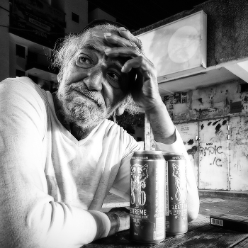 Пазавчера вечером мы вышли пройтись и в конце прогулки присели передохнуть. Вдруг к нам подошел человек с двумя банками и пачкой сигарет, вежливо поздоровался и присел рядом, но пивом не угостил. Думаю, что ожидал определенного общения, но не вышло. Красноречивое молчание обошлось ему только парой фотографий.