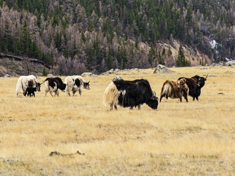 Животные хорошо смотрелись на фоне гор и леса.